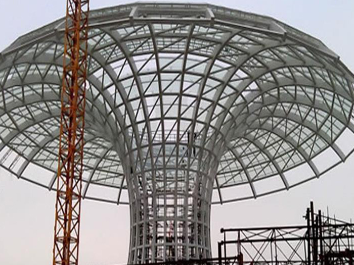 二、球形网架结构因其结构新颖,受力合理,自重轻、用钢量低等优点。如大型体育场馆球形鹤岗螺栓球网架、公共场馆球形网架、电厂鹤岗螺栓球网架、水泥工业球形网架、仓储物流球形网架、鹤岗干煤棚工业球形网架、鹤岗收费站鹤岗加油站球形网架、展览中心、影剧院、商场、航站楼、候车厅、工厂鹤岗车间、仓库、电视塔等球形螺栓球节点网架。国内球形网架结构主要分为:鹤岗焊接球节点网架及螺栓球节点网架两种。螺栓球节点网架其构件工厂内加工量较大,现场安装便捷,适用于现场工期紧,鹤岗施工条件、用电量受制约,网架形状复杂、鹤岗杆件定位困难的异形结构。螺栓球节点球形网架系统基本由鹤岗杆件、螺栓球、支撑支座等组成。按照节点形式可分为交叉鹤岗桁架体系、四角锥体系、三角锥体系等。支撑方式多为固定支座支撑。对于大面积、大跨度及有特殊受力或伸缩要求的网架结构可采用橡胶支座、滑移支座、球铰支座等支撑形式,以满足结构自身的受力稳定、均衡,便于内力释放等设计要求。